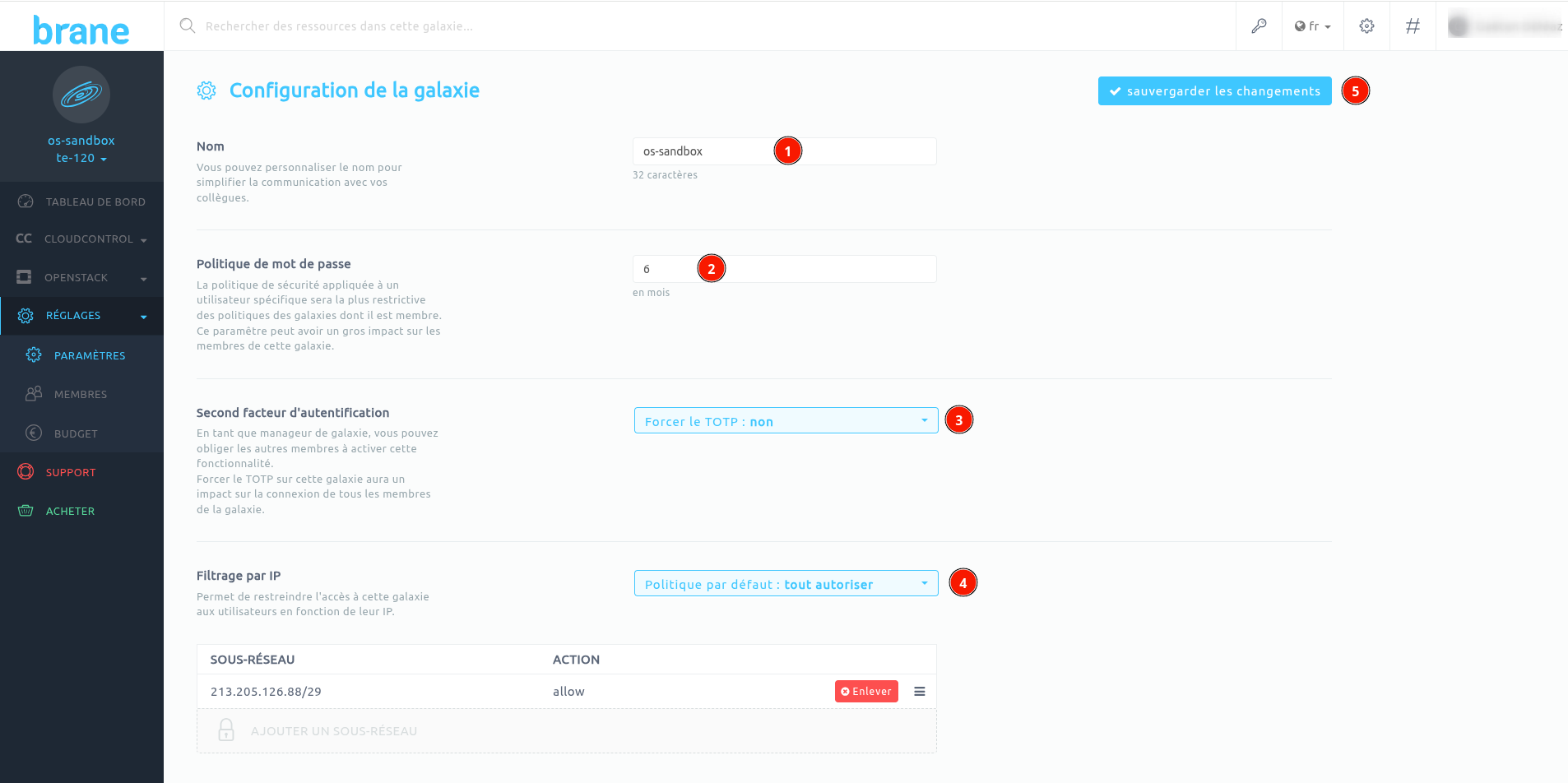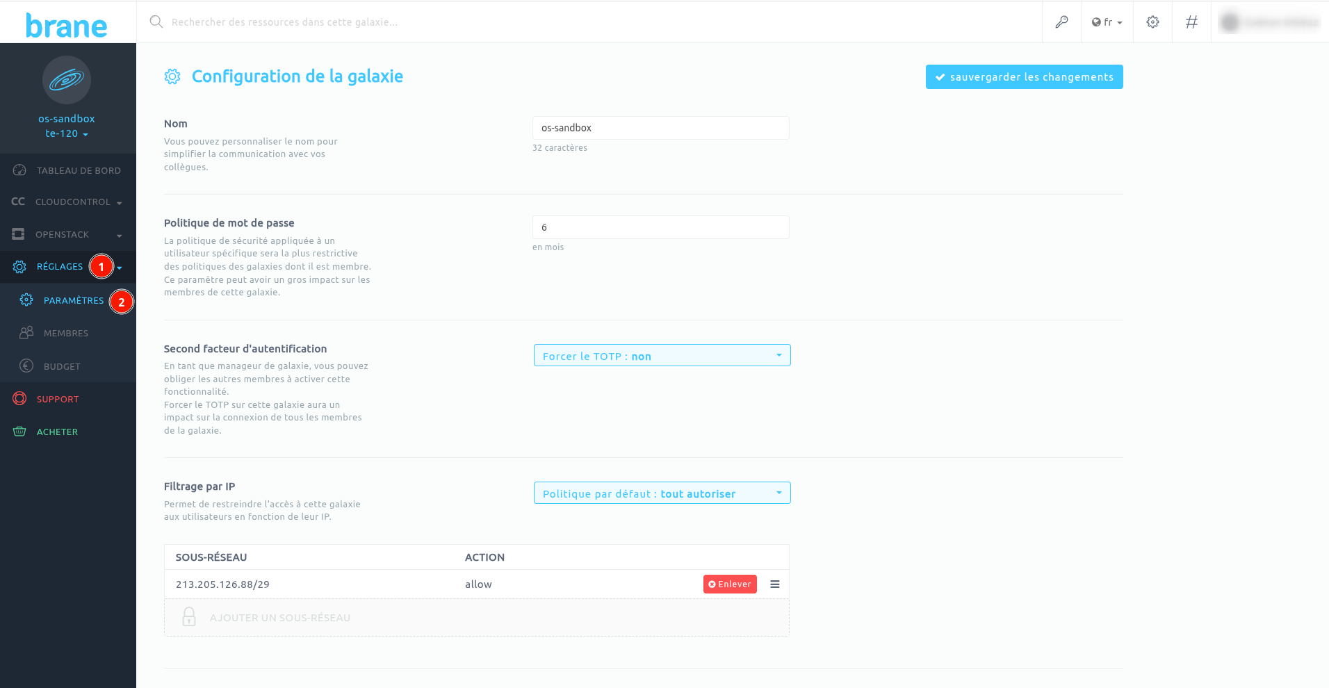 Forcer le second facteur d'authentification pour les membres de votre Galaxie ( Voir Sécurité du Compte pour la gestion du TOTP) .