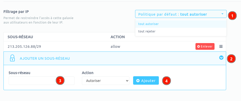 Restreindre l'accès à cette Galaxie aux utilisateurs en fonction de leur IP .